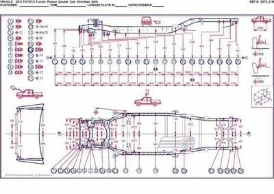 -Геометрические размеры автомобилей TOYOTA Tundra 2006-2013, как проекционные, так и непосредственного измерения, в том числе диагональные размеры проемов кузова и контрольные точки для восстановления геометрии. Приведены данные для всех испонений кузова - с однорядной и двухрядной кабиной, с короткой и длинной базой.