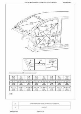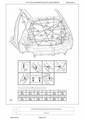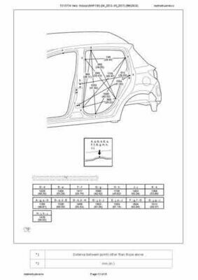 - Из официального руководства по ремонту кузова TOYOTA Yaris Hybryd (NHP130) (04_2012--03_2017), в том числе диагональные размеры проемов.