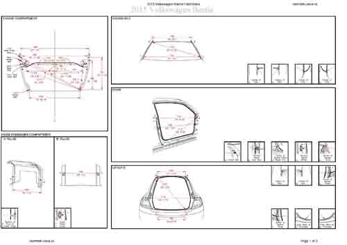 - Геометрические размеры кузова VOLKSWAGEN Beetle 2011-2015, как проекционные, так и непосредственного измерения, в том числе диагональные размеры проемов кузова и контрольные точки для восстановления геометрии кузова.