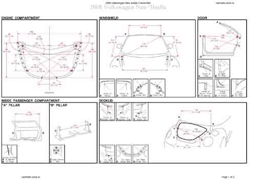 - Геометрические размеры кузова VOLKSWAGEN New Beetle 1998-2010, как проекционные, так и непосредственного измерения, в том числе диагональные размеры проемов кузова и контрольные точки для восстановления геометрии кузова. Модели Coupeи Convertible.