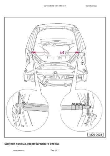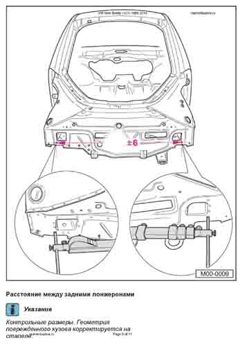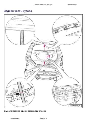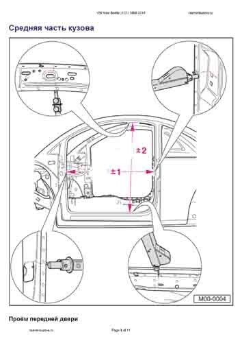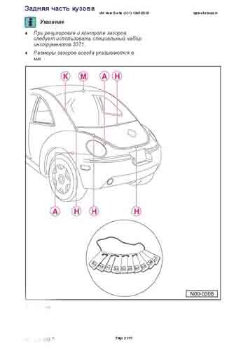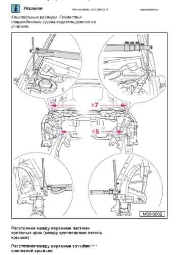 - Из заводского руководства по ремонту кузова VW New Beetle 1998-2010, в том числе сведения о допустимых зазорах кузовных панелей. Производитель предупреждает: "Все размеры используются только для проверки; точные размеры задаются стапелем."