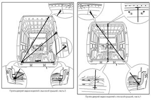 - Из заводского руководства по ремонту кузова VOLKSWAGEN Crafter (2F) 2006-2016, в том числе диагональные размеры проемов кузова. Дополнительно приведены сведения о допустимых зазорах кузовных панелей.