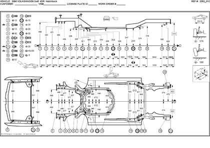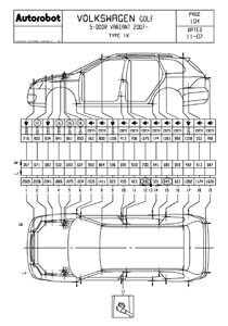 - Проекционные размеры VOLKSWAGEN Golf V с привязкой к стапелю.