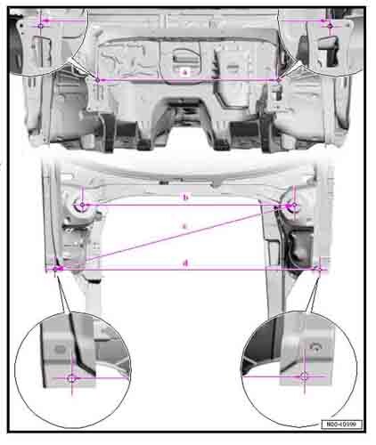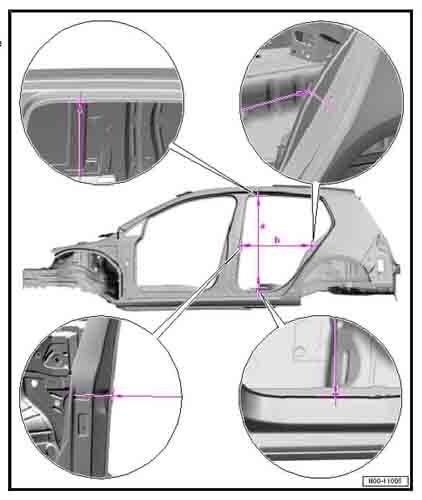 - Из заводского руководства по ремонту кузова моделей VW Golf A8 (CD1) 2019-2024, Golf A8 (DA1) 2024--, Golf Variant (CG5) 2020-2024, Golf A8 Variant (DB5) 2024--, в том числе размеры проемов. Дополнительно приведены величины допустимых зазоров кузовных панелей.