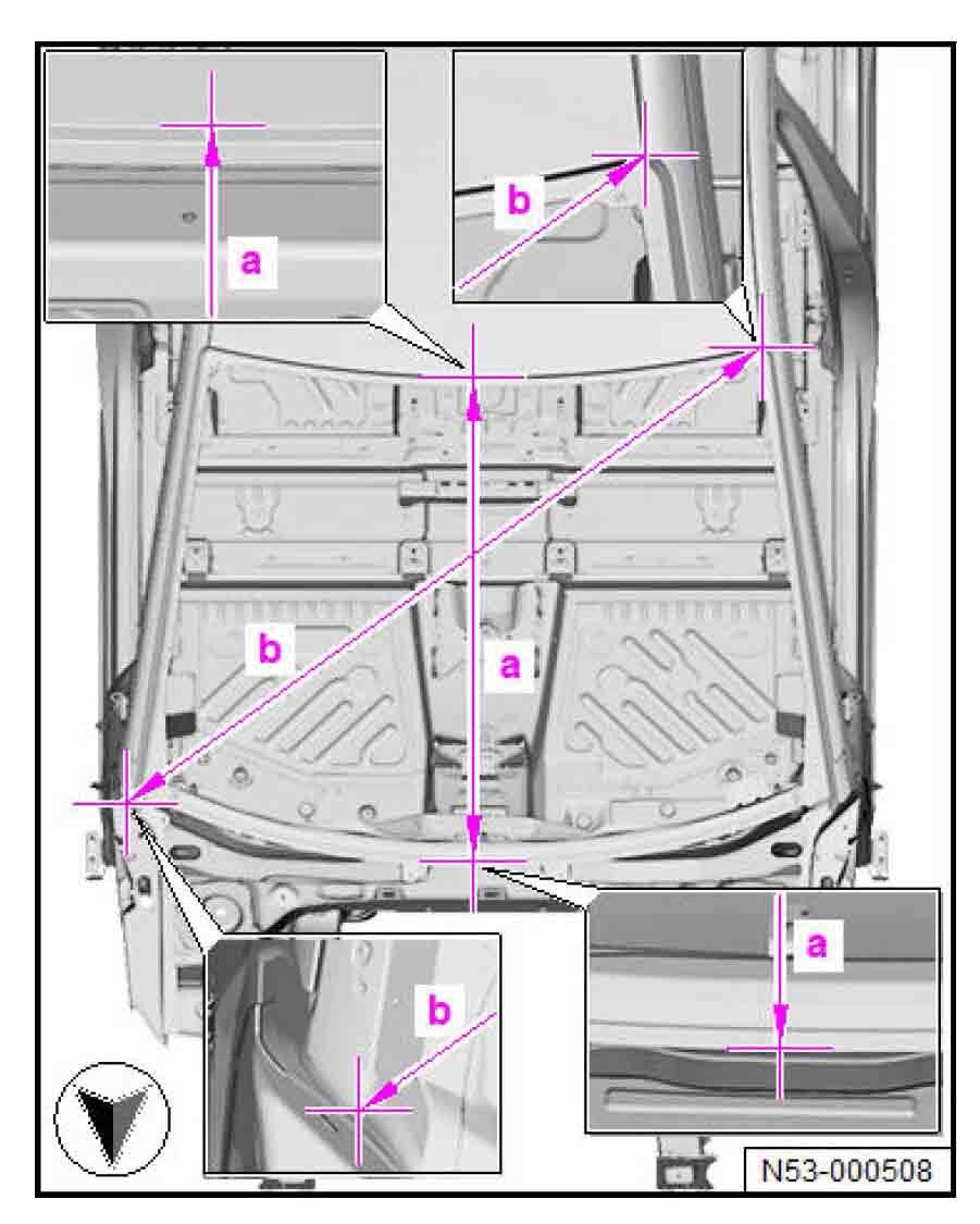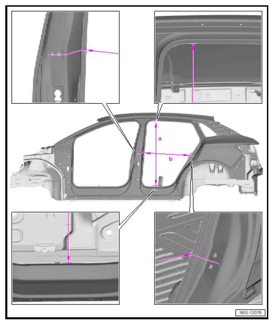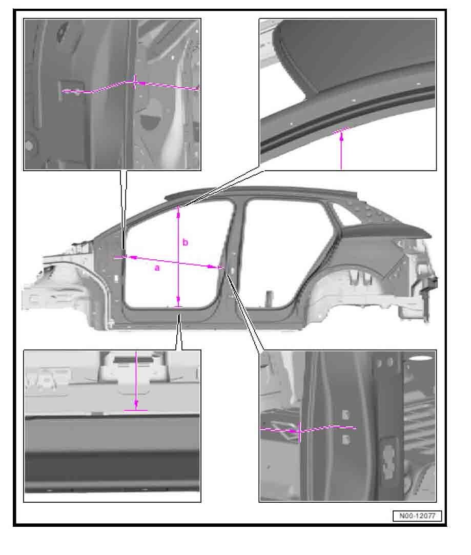 Контрольные кузовные размеры Фольксваген АйДи7 из заводского руководства по ремонту кузова VOLKSWAGEN ID.7 [ED, ED2, ED5] 2023--, в том числе размеры проемов.