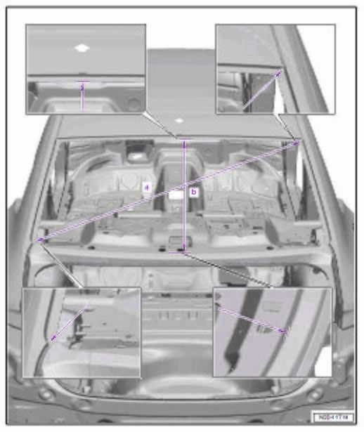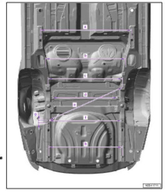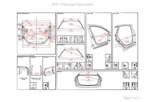 - Геометрические размеры кузова VOLKSWAGEN Jetta 2018--, как проекционные, так и непосредственного измерения, в том числе диагональные размеры проемов кузова и контрольные точки для восстановления геометрии кузова.