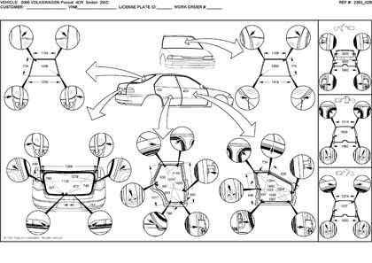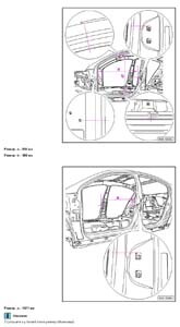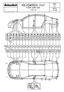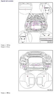 - Из заводского руководства по ремонту кузова VOLKSWAGEN Passat B6, в том числе диагональные размеры проемов кузова и сведения о допустимых зазорах кузовных панелей.