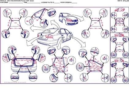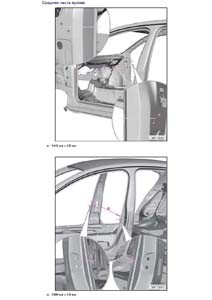 - Размеры кузова , как проекционные, так и непосредственного измерения, в том числе диагональные размеры проемов кузова.