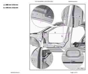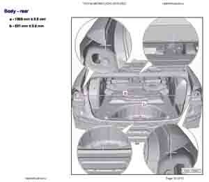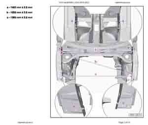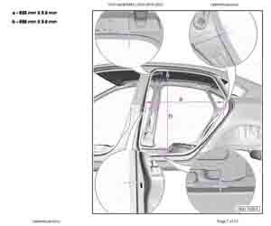 Контрольные кузовные размеры Фольксваген Пассат NMS из заводского руководства по ремонту кузова VOLKSWAGEN Passat NMS (A34) 2019-2022 для рынка северной Америки, в том числе размеры проемов. Дополнительно приведены величины допустимых зазоров кузовных панелей.