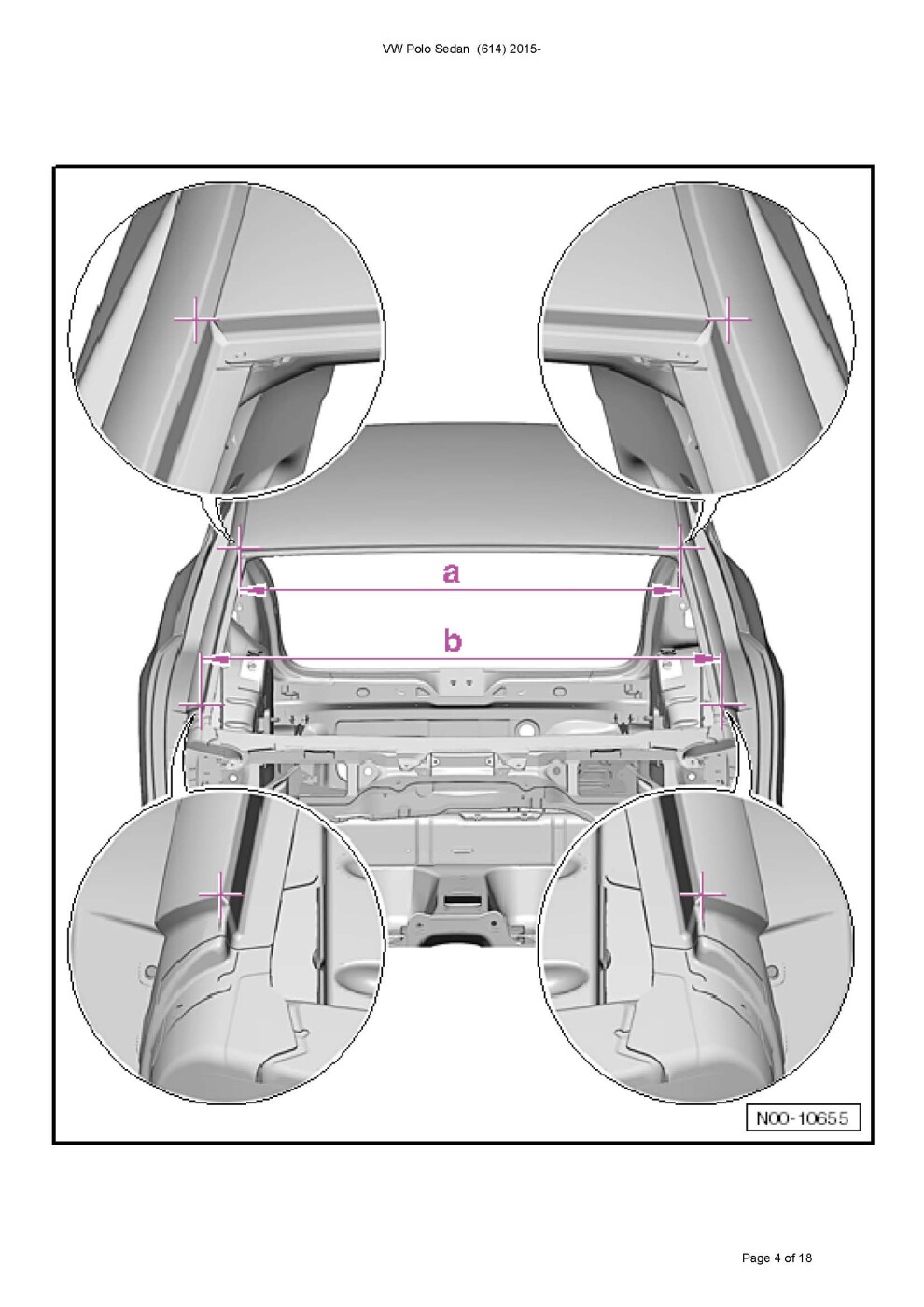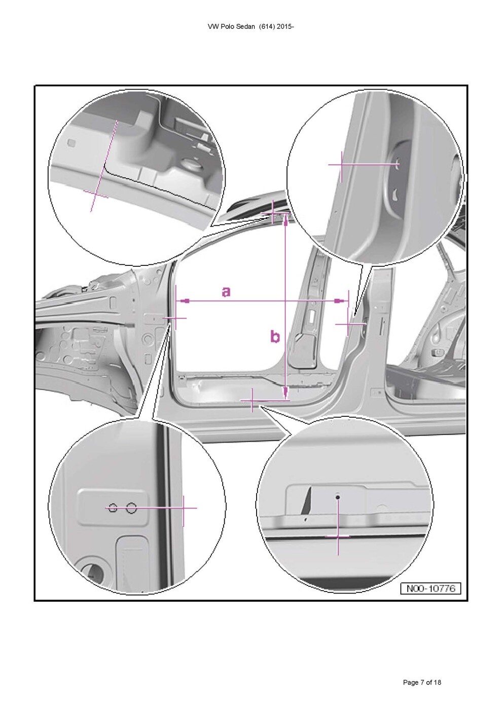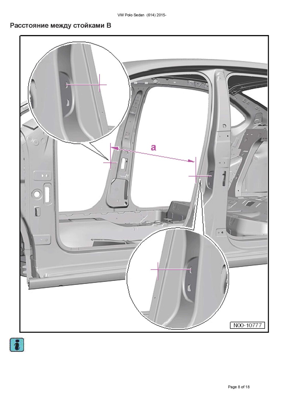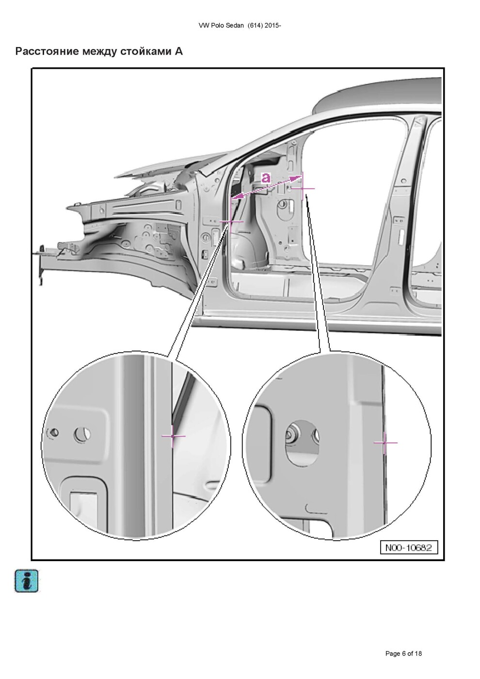 - Из заводского руководства по ремонту кузова VOLKSWAGEN Polo SH (614) Sedan для российского рынка, в том числе размеры проемов кузова. Дополнительно приведены сведения о допустимых зазорах кузовных панелей.