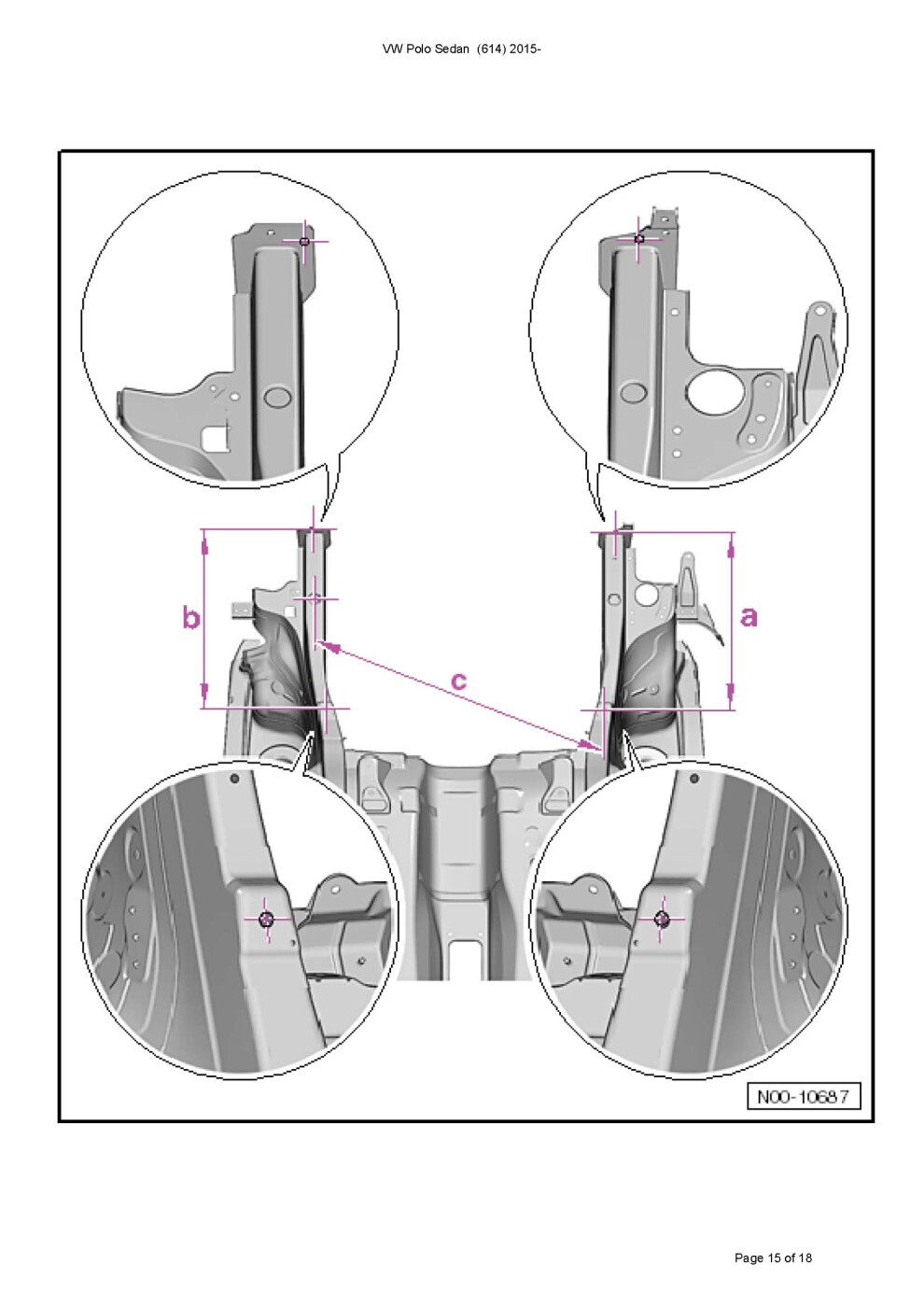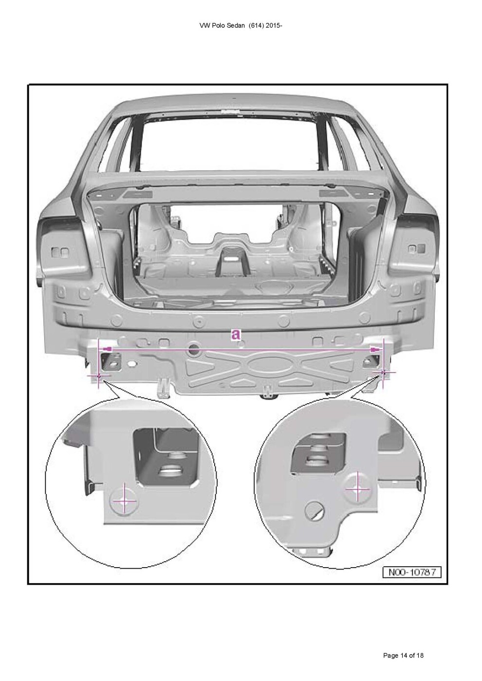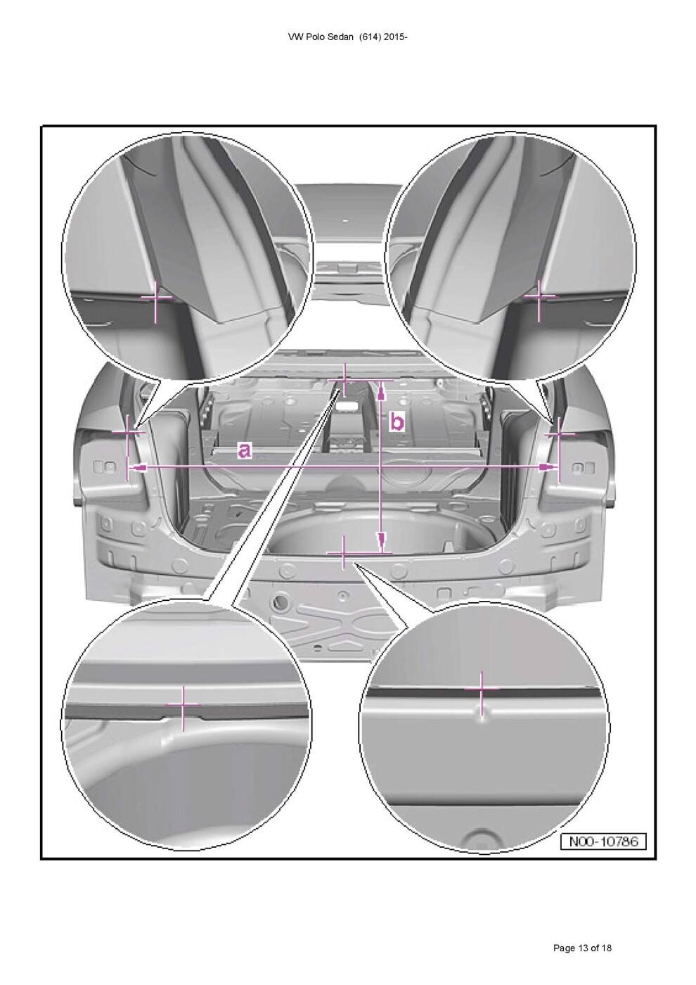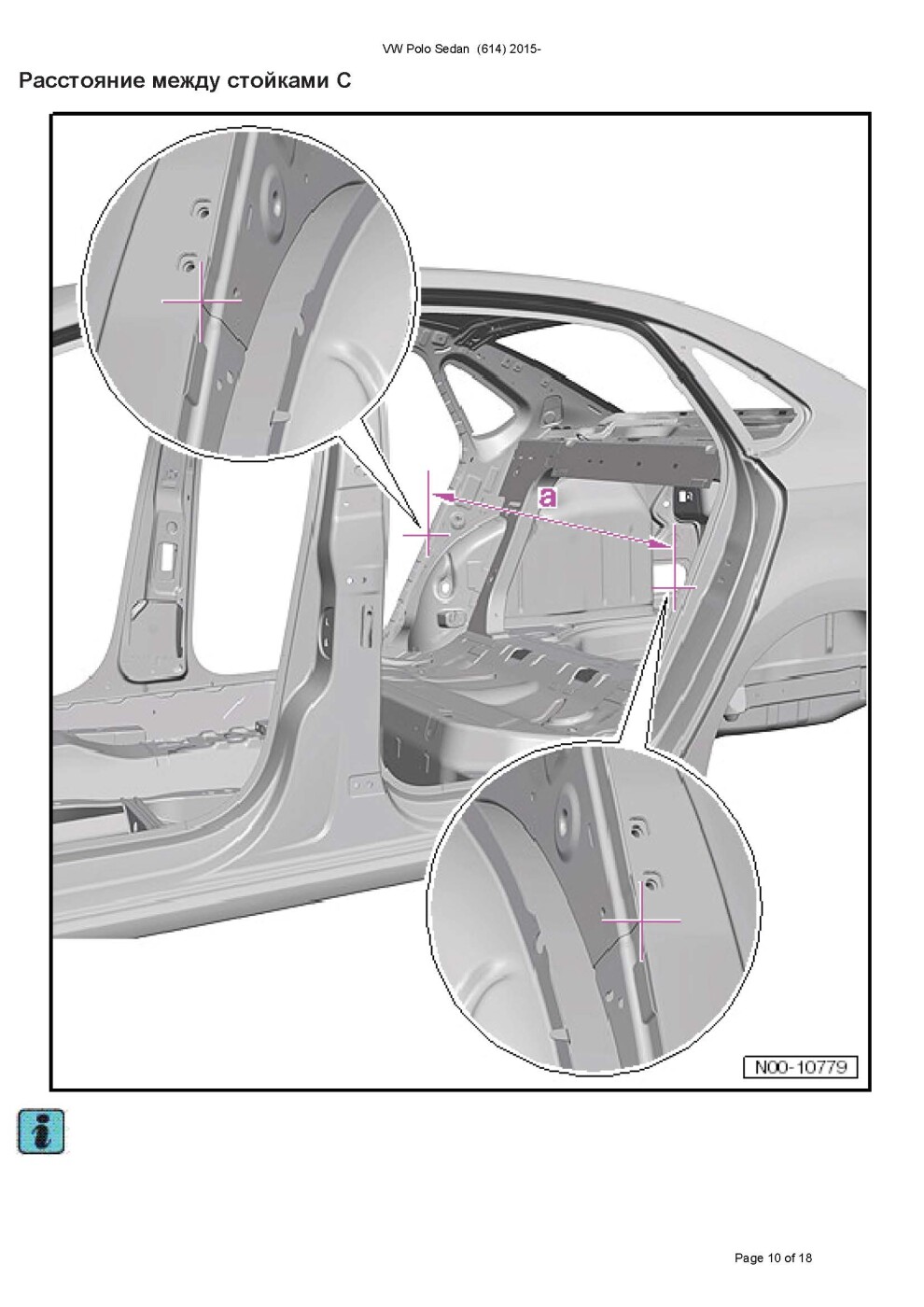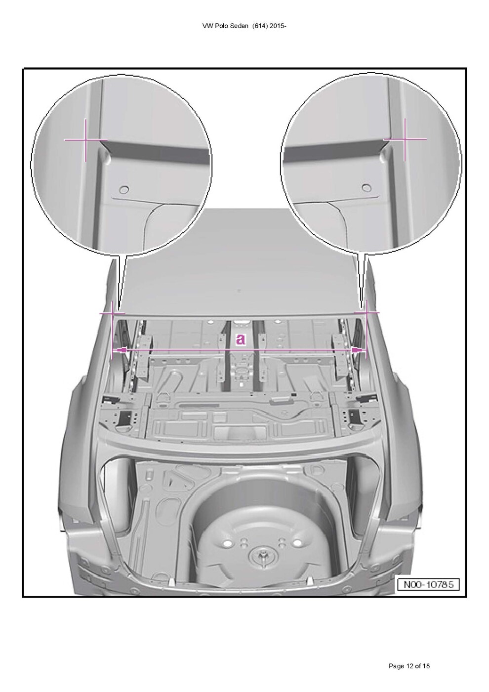 - Из заводского руководства по ремонту кузова VOLKSWAGEN Polo SH (614) Sedan для российского рынка, в том числе размеры проемов кузова. Дополнительно приведены сведения о допустимых зазорах кузовных панелей.