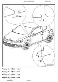 - Из заводского руководства по ремонту кузова VOLKSWAGEN Scirocco, в том числе диагональные размеры проемов кузова и сведения о допустимых зазорах кузовных панелей.