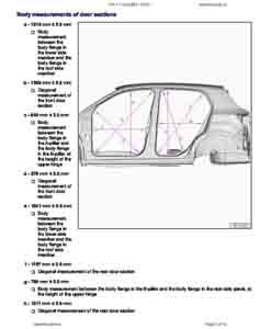 - Из заводского руководства по ремонту кузова VOLKSWAGEN T-Cross (BF) 2019--, в том числе размеры проемов. Дополнительно приведены величины допустимых зазоров кузовных панелей.