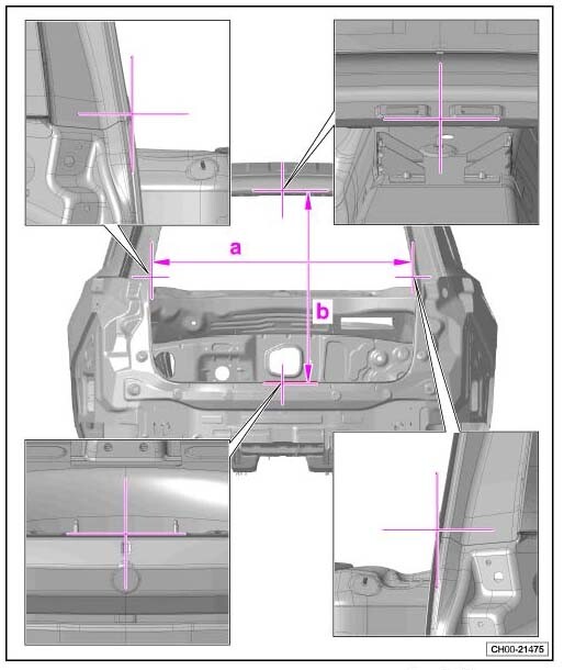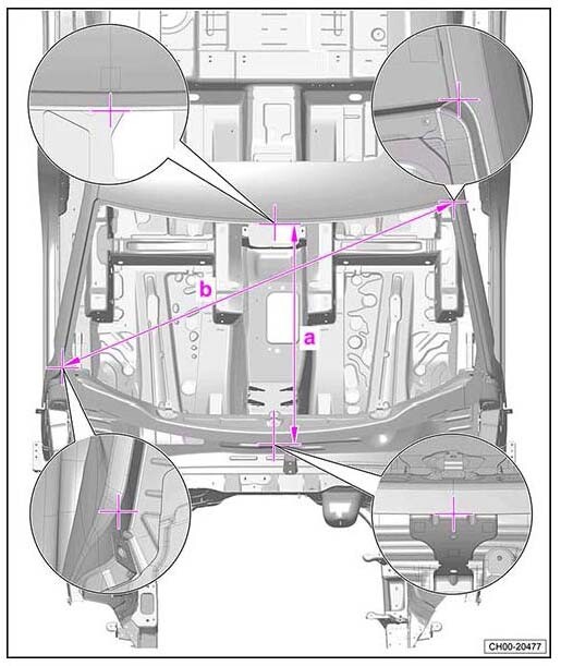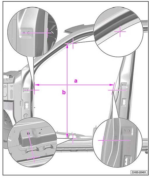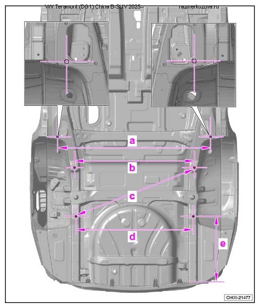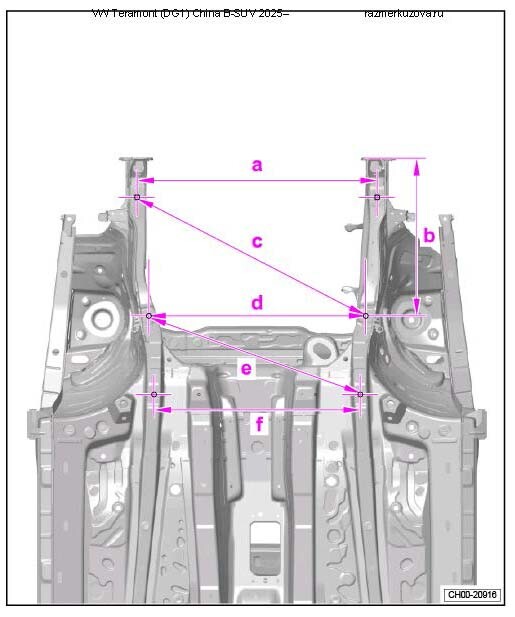 Контрольные кузовные размеры Фольксваген Терамонт из заводского руководства по ремонту кузова VOLKSWAGEN Teramont (DG1) China B-SUV 2025--, в том числе размеры проемов.