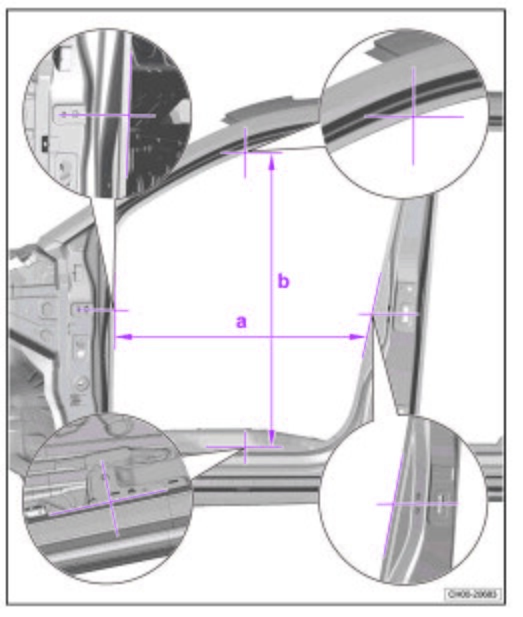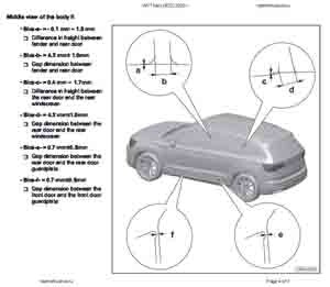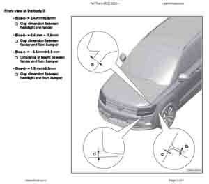- Из заводского руководства по ремонту кузова VOLKSWAGEN Tharu (B21 B22) 2018-2023--, в том числе размеры проемов. Дополнительно приведены величины допустимых зазоров кузовных панелей.