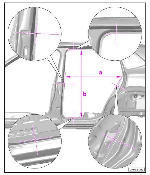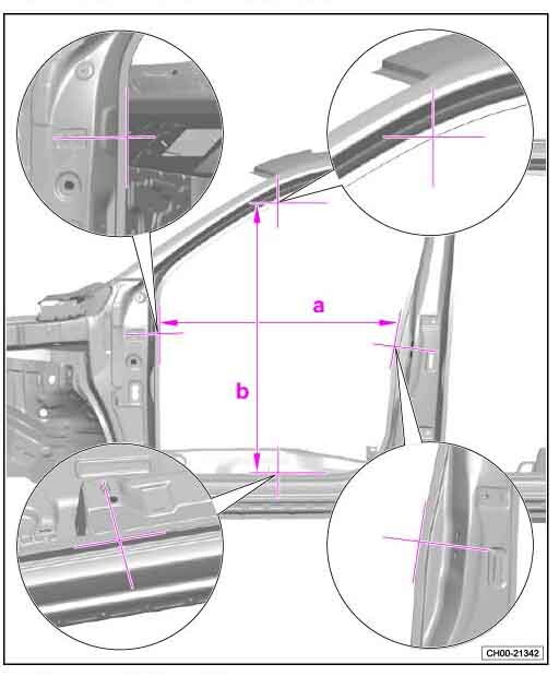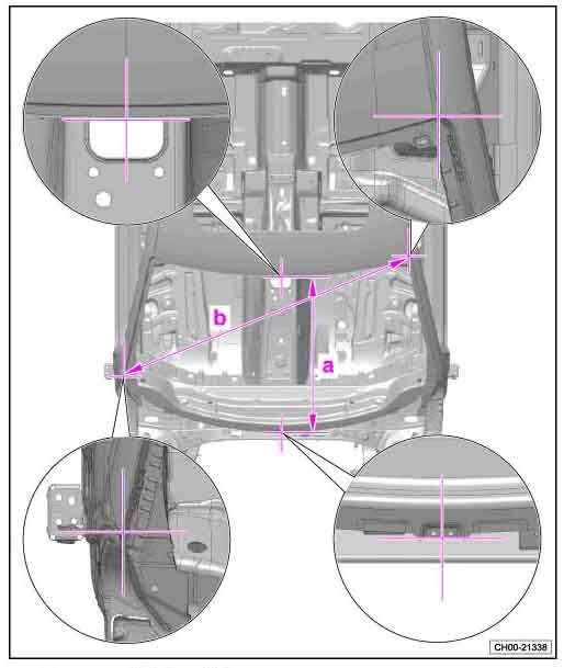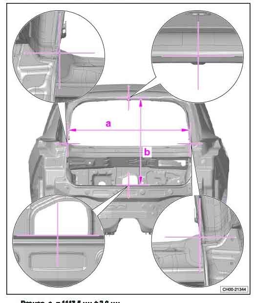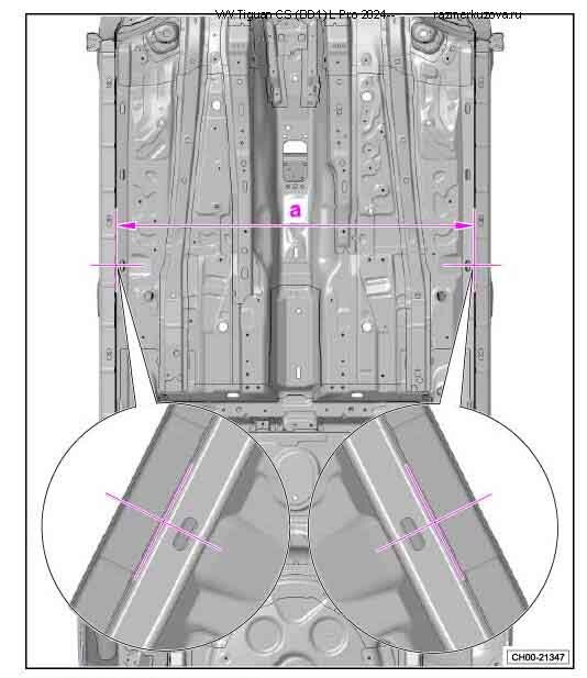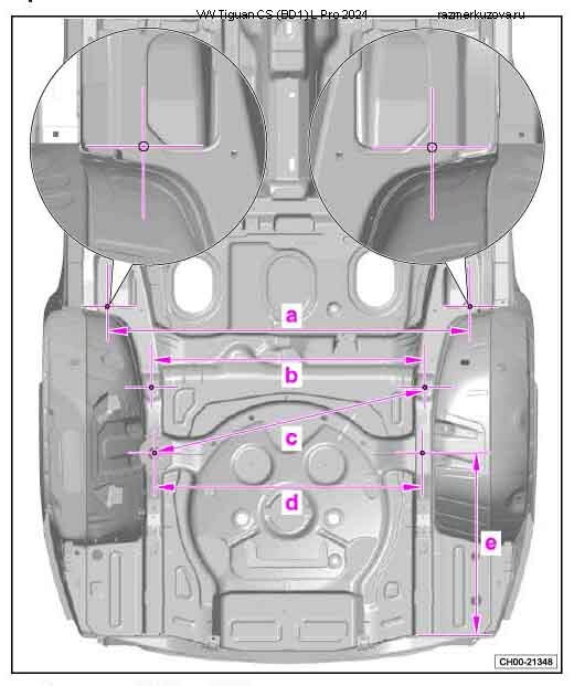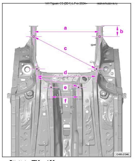 Контрольные кузовные размеры Фольксваген Тигуан Л Про из заводского руководства по ремонту кузова VOLKSWAGEN Tiguan CS (BD1) L Pro 2024--, в том числе размеры проемов.