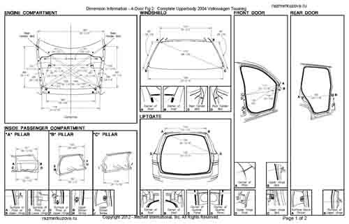 - Размеры кузова, как проекционные, так и непосредственного измерения, в том числе диагональные размеры проемов кузова.