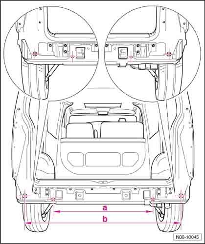 - Проекционные размеры с привязкой к стапелю. Дополнительно приведены цветные фотографии мест расположения контрольных точек на реальном автомобиле.