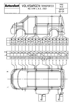 Контрольные кузовные размеры моделей Transporter T5, Multivan, Caravelle, California: