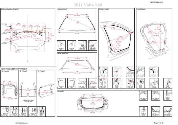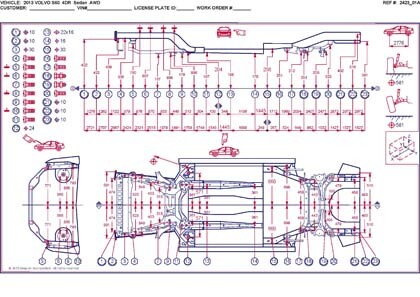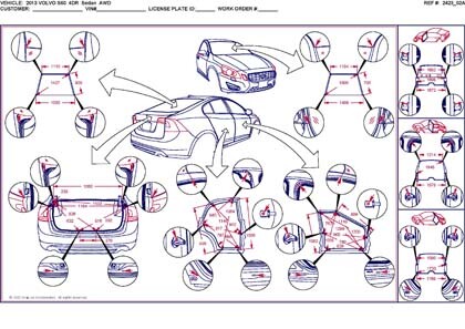 - Геометрические размеры кузова, как проекционные, так и непосредственного измерения, в том числе диагональные размеры проемов кузова и контрольные точки для восстановления геометрии.