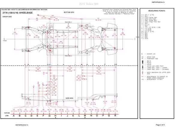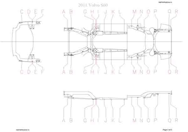 Контрольные размеры кузова VOLVO S60 2010-2018: