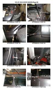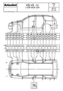 - Геометрические размеры кузова VOLVO V50 2004-2012, как проекционные, так и непосредственного измерения, в том числе диагональные размеры проемов кузова и контрольные точки для восстановления геометрии.