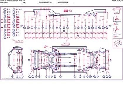- Геометрические размеры кузова , как проекционные, так и непосредственного измерения, в том числе диагональные размеры проемов кузова и контрольные точки для восстановления геометрии.