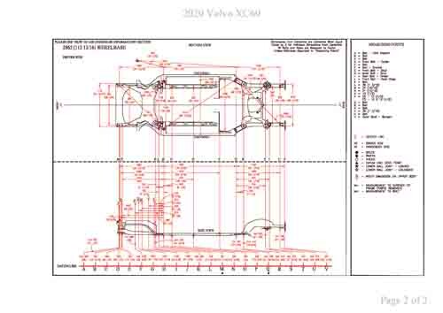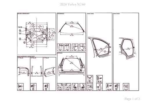 - Геометрические размеры кузова VOLVO XC60 2018--, как проекционные, так и непосредственного измерения, в том числе диагональные размеры проемов кузова и контрольные точки для восстановления геометрии.