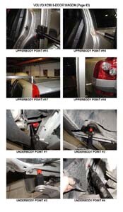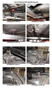 - Проекционные размеры с привязкой к стапелю. Дополнительно приведены цветные фотографии мест расположения контрольных точек на реальном автомобиле.