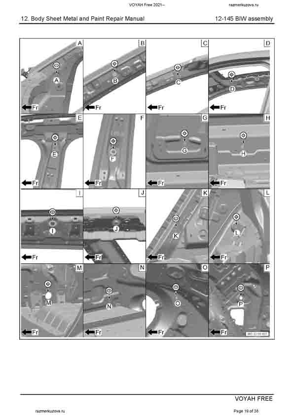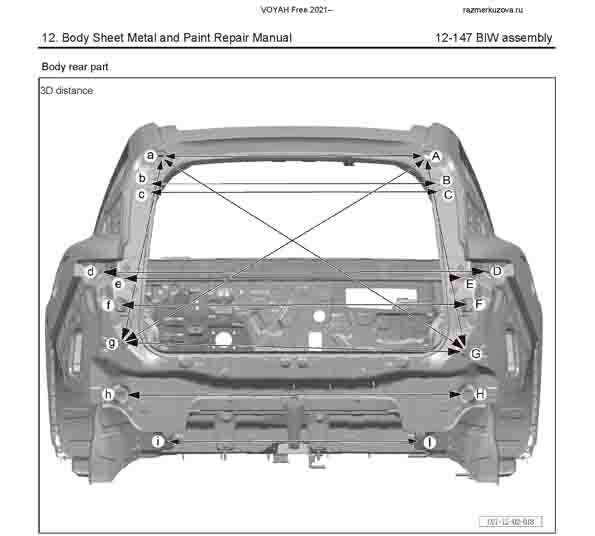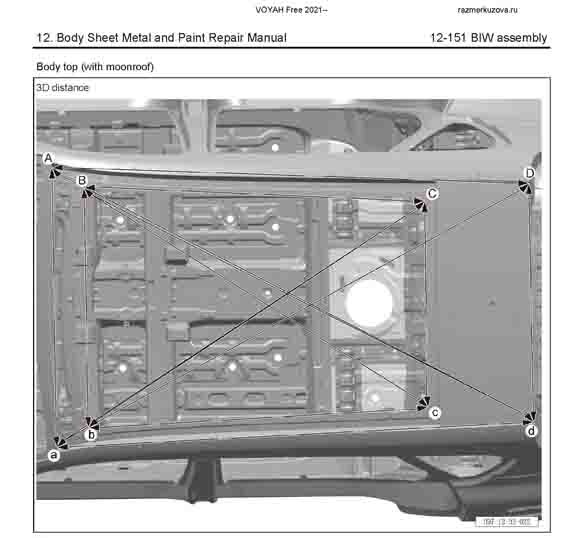 Контрольные размеры кузова для автомобилей VOYAH Free 2021-2023-2025-- из заводского руководства по ремонту кузова, в том числе размеры проемов кузова. Дополнительно приведены сведения о допустимых зазорах кузовных панелей.